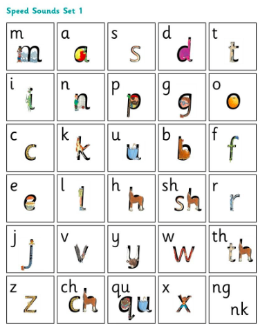 Set 1 Sounds are taught in the following order together with rhymes to help children form the letters correctly and instantly recognise sounds ready for blending.